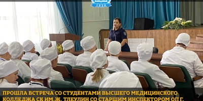 Прошла встреча со студентами высшего медицинского колледжа СК им.Ж. Тлеулин со старшим инспектором ОП г. Петропавловска, подполковником полиции Абышевой Э. М