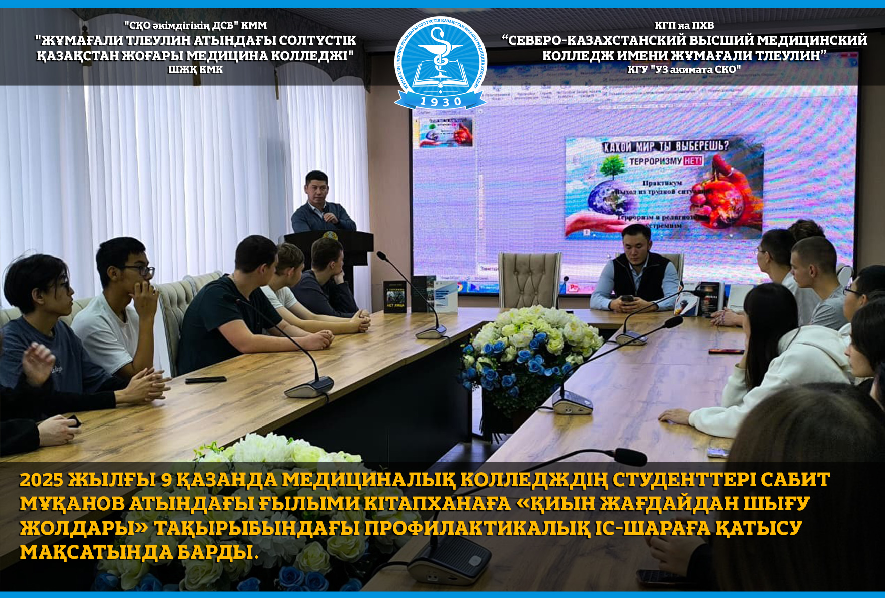 2025 жылғы 9 қазанда медициналық колледждің студенттері Сабит Мұқанов атындағы ғылыми кітапханаға «Қиын жағдайдан шығу жолдары» тақырыбындағы профилактикалық іс-шараға қатысу мақсатында барды.