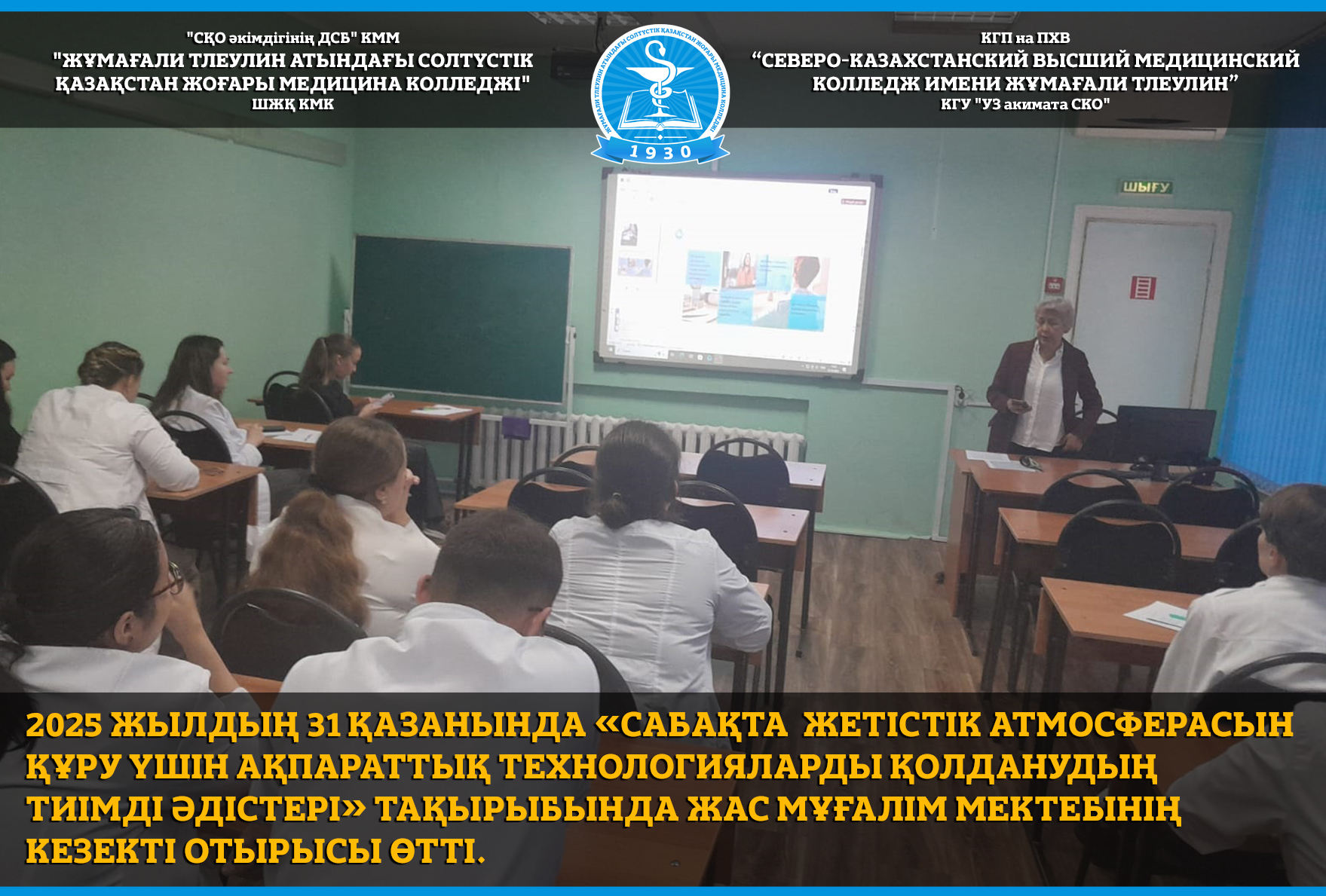 2025 жылдың 31 қазанында «Сабақта жетістік атмосферасын құру үшін ақпараттық технологияларды қолданудың тиімді әдістері» тақырыбында Жас мұғалім мектебінің кезекті отырысы өтті. Іс-шараның мақсаты: Жас мамандардың болашақ кәсіби өсуін жоспарлаудағы қажетт