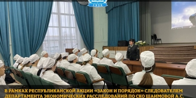 03 декабря 2025 года в рамках республиканской акции «Закон и порядок» следователем Департамента экономических расследований по СКО Шаимовой А.С. был проведён обучающий урок по финансовой безопасности для студентов медицинского колледжа.