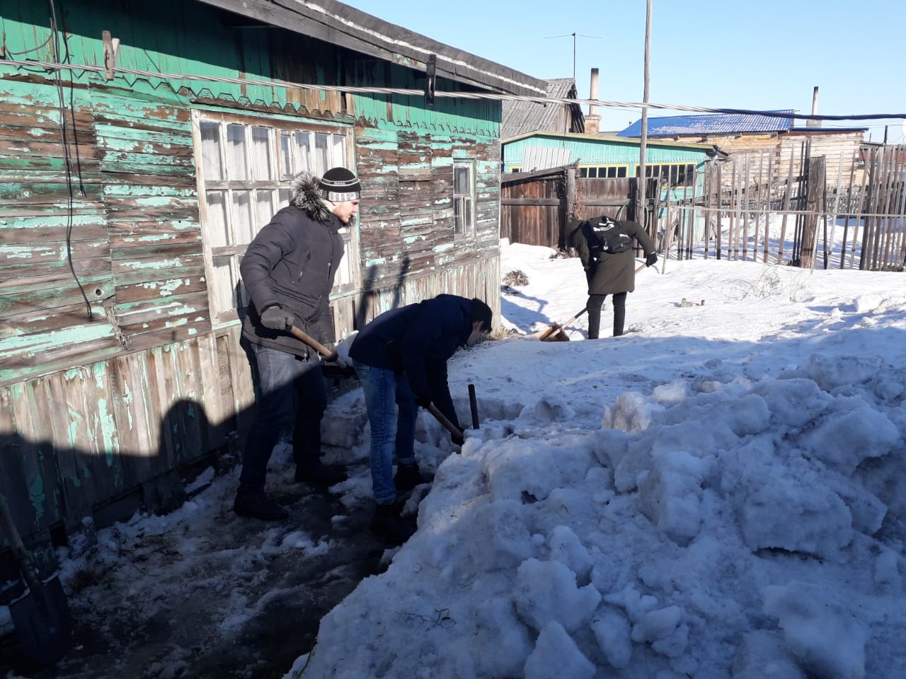 16 марта Каирбеков Манас, Жұмаш Женіс и Закотырин Александр, совместно с Молодёжным ресурсным центром города, проехали к семье Лазаревых, чтобы помочь с уборкой снега. А студенты группы Д 18-11 Орлов Денис, Темерханов Павел и Муртазов Джовхар посетили ветерана труда Богун Василия.