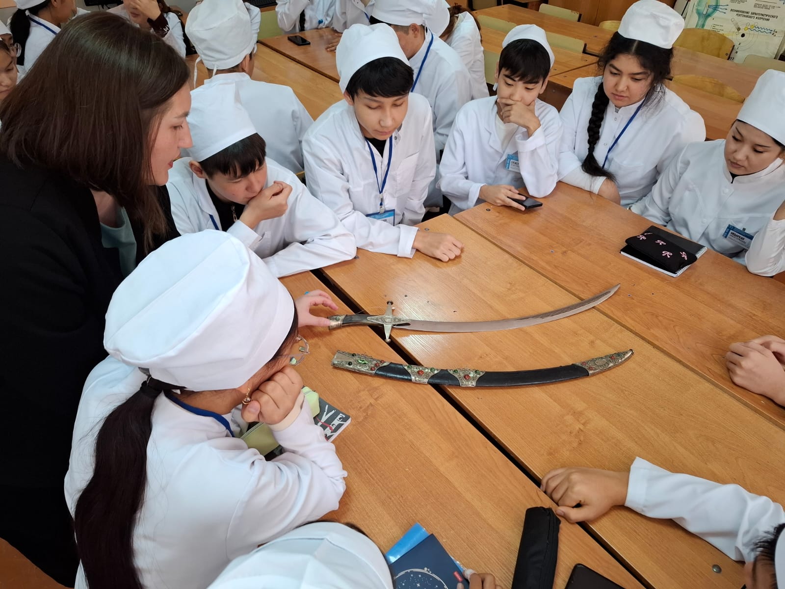 Сотрудники музея-резиденции Аблайхана провели в колледже музейный урок на тему «XVIII ғасырдағы батырлардың ел сақтаудағы рөлі мен қазақтардың қару-жарақ ерекшелігі».
