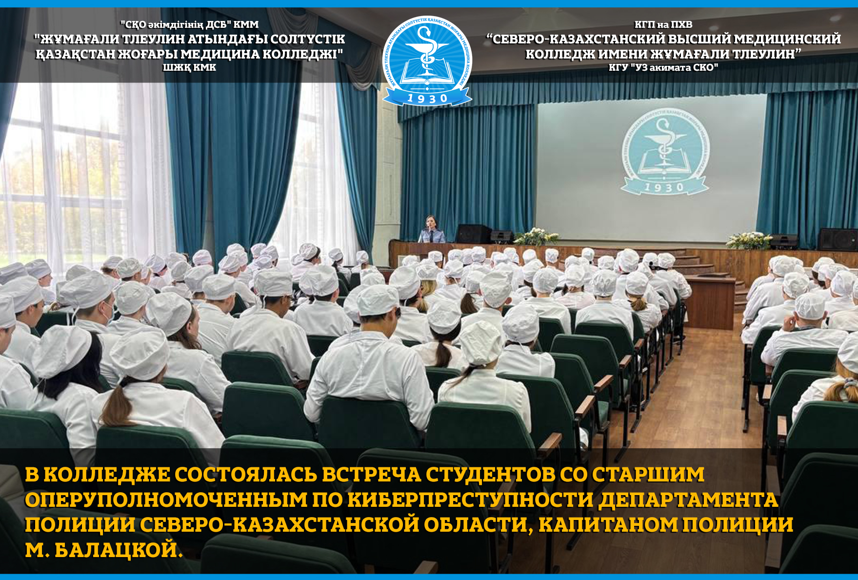 В колледже состоялась встреча студентов со старшим оперуполномоченным по киберпреступности Департамента полиции Северо-Казахстанской области, капитаном полиции М. Балацкой.