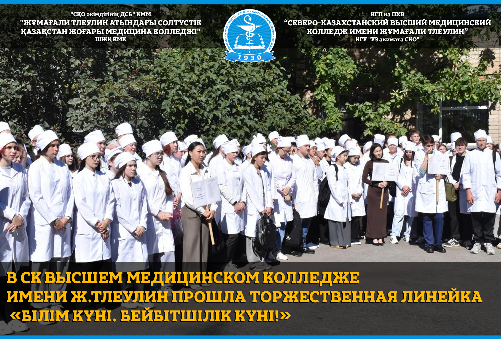 В СК высшем медицинском колледже имени Ж.Тлеулин прошла торжественная линейка «Білім күні. Бейбітшілік күні!»