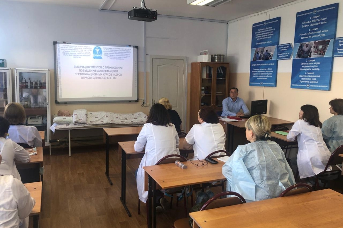 07.06.2024 жылы көп бейінді балалар облыстық ауруханасының орта медицина қызметкерлеріне арналған денсаулық сақтау саласы кадрларының біліктілігін арттыру және сертификаттау курстарынан өткендігі туралы құжаттарды беру мемлекеттік қызметін алуды түсіндіру бойынша семинар ұйымдастырылды.