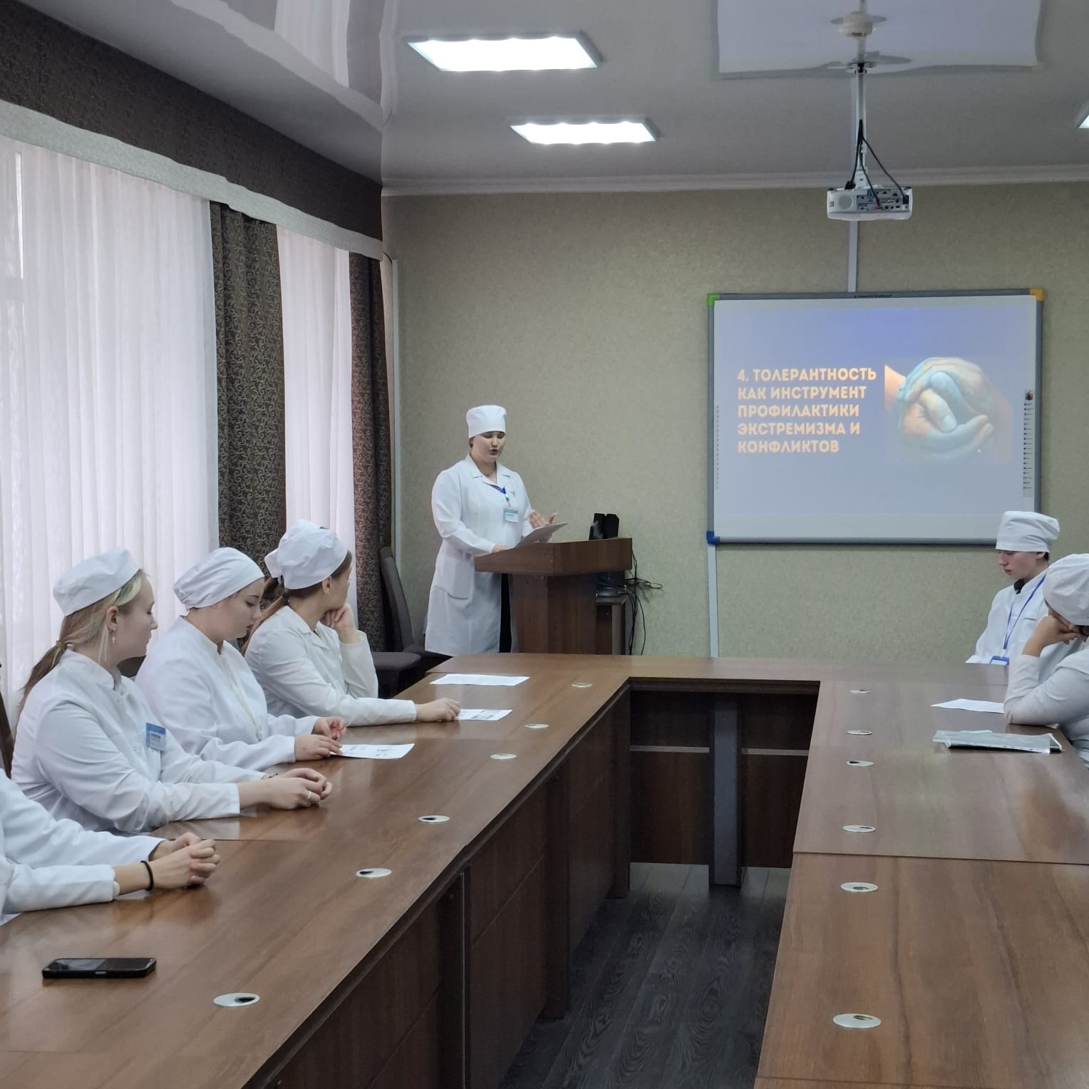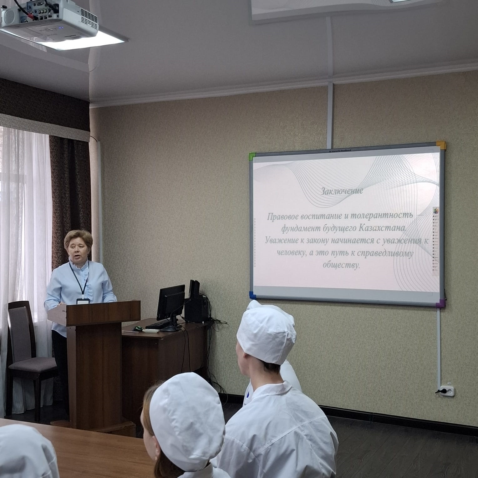 12.11.25 жылы колледжде адам құқықтарын құрметтеу, әділеттілік және азаматтардың құқықтық мәдениетін қалыптастыру мәселелеріне арналған "Құқықтық мемлекеттегі толеранттылық" атты дөңгелек үстел өтті. Дөңгелек үстел жұмысына М25-11, Ф25-11, Ф25-03 топтарының бірінші курс студенттері қатысты.