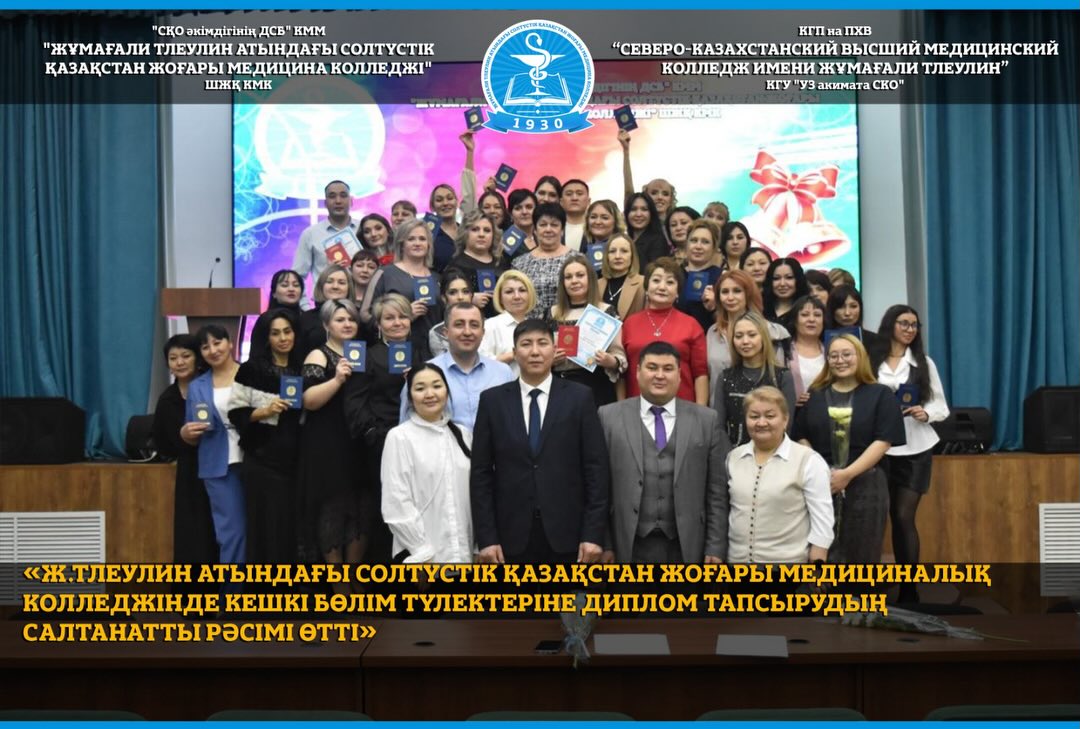 Ж.Тлеулин атындағы Солтүстік Қазақстан жоғары медициналық колледжінде кешкі бөлім түлектеріне диплом тапсырудың салтанатты рәсімі өтті.